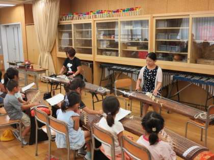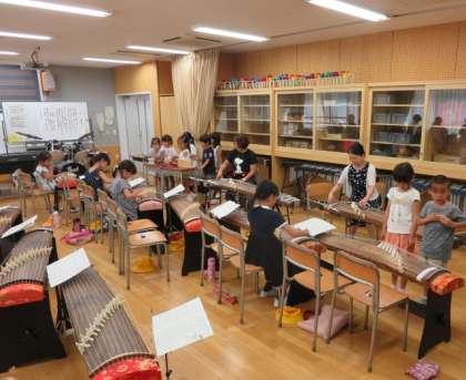 後半は、1年生から3年生がお琴を習いました。打楽器や歌も取り入れながら、「さくらさくら」や「虫の声」を演奏しました。先生方にジブリメドレーを演奏していただき、お琴の音色の美しさを味わいました。最後は、「ビリーブ」にも挑戦でき、先生方のおかげで上手になりました。ありがとうございました。