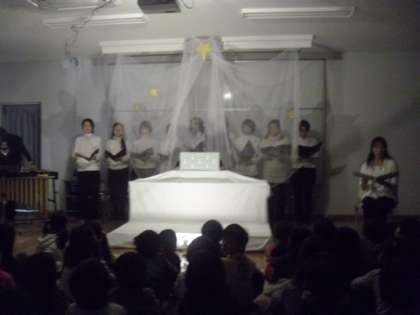 2つ目のお話は「クリスマスってなあに」でした。子どもたちの目はらんらんと輝いていました。DKOの皆様本当にありがとうございました。
