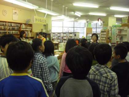 3年生の深沢図書館見学です。地域の図書館をたくさん活用しましょう。今後は、3年生全員が貸出カードを持つ予定です。