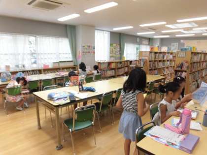 プール期間中は絵本室、図書室ともに13時まで開館します。