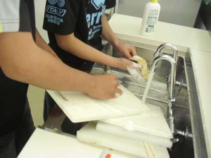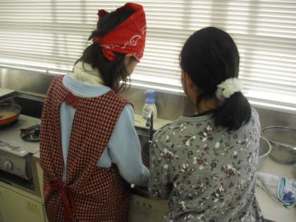 ジャガイモのきんぴらを作りました。家庭科室を訪問した時には、すでに片付けでした。調理の様子を届けられず残念です。ごめんなさい。洗い物も友達と協力して作業しています。