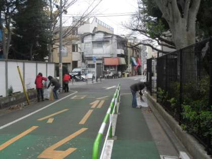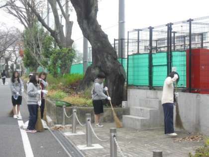 7校2園のクリーン作戦の日です。東深沢小学校では、PTAの皆様が学校の周りの落ち葉などを掃いてきれいにしてくれました。園芸高校の生徒の皆さんも呑川緑道の掃除をしてくれました。寒い日でしたが、心はとてもポカポカしました。ありがとうございました。