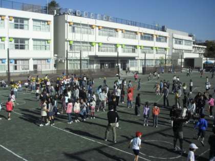 はじめは、各コース1本の縄でしたが、たくさんの友達が集まったので、長縄も増やしました。先生方も子どもたちと一緒に楽しみました。3枚目の写真は、今日の「共遊び」を考えた運動委員会のメンバーです。ありがとう。
