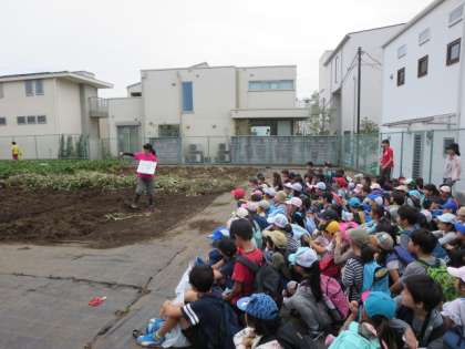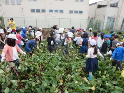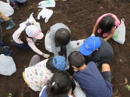2年生は、4日(木)に秋山農園へさつまいもほりへ出かけました。まずは、長い蔓を友達と協力して引っ張りました。そして、土が見えてきたら、さつまいもほり開始!小さいいも、大きいいも、すぐ見つかるいも、奥深く隠れているいも。友達と協力して掘ったり、見つけると大きな声で喜んだりする子ども達の姿が見られました。どんな料理になるのか、楽しみですね。さつまいもを育ててくださった方々、ありがとうございました。
