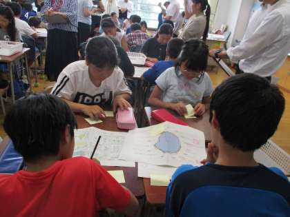 5年生の学級活動の時間に「学級力向上プロジェクト」の授業を行いました。自分たちの学級を自己評価したレーダーチャートを分析し、よりよい学級を創り上げていくにはどうしたらよいかを考えました。