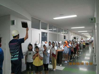 毎月1度、実施している避難訓練を行いました。雨天のため、校庭には避難しませんでしたが、教職員の指示に従い、速やかに避難することができました。この後、各教室では、火災に遭遇したときの自分の身の守り方や消火器の扱いなどを発達段階に応じて学びました。