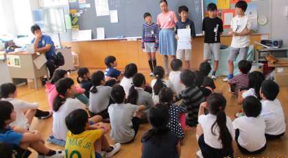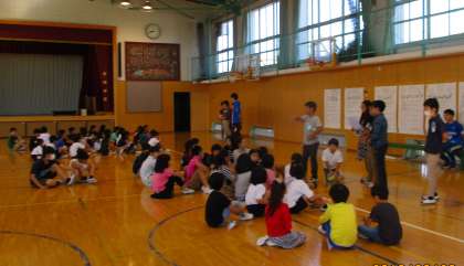 1〜6年生を縦割り班に分け、それぞれの班に分かれ、高学年児童の企画した遊びを楽しみました。各教室、体育館、校庭それぞれの場所から、児童の楽しそうな声援や歓声、笑い声が聞こえました。高学年児童が下級生をさり気なく思いやり気遣う姿が随所に見られ、心が温かくなりました。