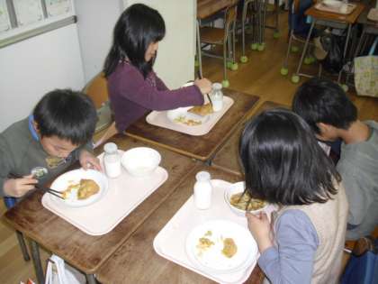 そして、今日は冬至、一年で一番昼が短く、夜が長い日になります。昔からこの日にはいろいろな過ごし方がありますが、今日は冬至に関係する食材を使った献立です。1つは「ゆず」。冬至の日にはゆずを入れた「ゆず湯」に入ると、悪い気を払って、風邪をひかないといわれています。もう1つは「かぼちゃ」。夏の野菜ですが、保存がきくため、昔から大切な食材として冬に食べてきました。他に、“運盛り”といって「ん」のつく食べ物は縁起がいいとされてきました。今日の献立の中で「ん」のつく食材は、うどん・にんじん・こんにゃく・だいこん、そしてかぼちゃを「なんきん」と呼ぶのでそれにあたります。東深沢小のみんなが元気に過ごせますように!!                                  (栄養士 飯野)