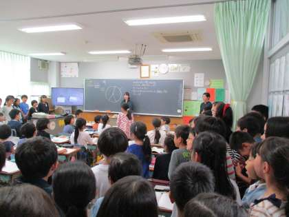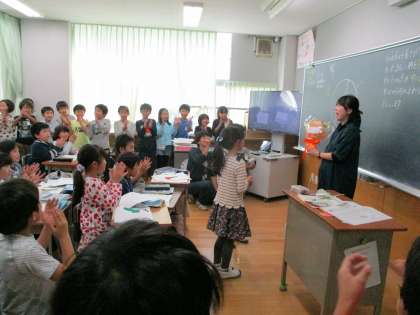 明日から産休に入る教員の最後の授業が終わろうとしたとき、突然、教室に他のクラスの児童と先生が入ってきました。驚いている先生を前に、代表の児童が、今までの感謝の言葉を言い、お礼の歌と花束をプレゼントしました。感激で涙ぐむ先生にもらい泣きしている児童もいました。温かい気持ちが教室じゅうに溢れていました。
