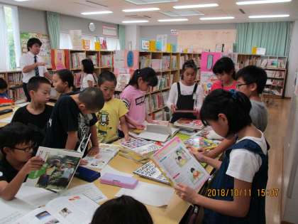 13日(土)まで3日間実施します。通常の教師による授業に加え、「社会に開かれた教育」を推進するために、様々な分野の人材にご協力いただき、児童の教育の充実に努めています。写真は、年間を通して図書業務を委託しているリブネットの図書館司書による4年生の授業と、ゲーム会社「CAPCOM」による5年生のキャリア教育の出張授業です。