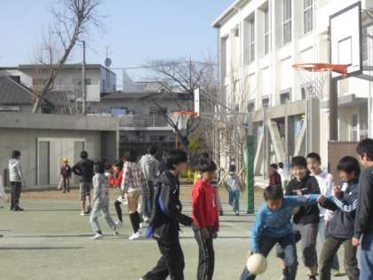 中休みは校庭で元気に遊んでいます。やっぱり学校には子どもたちの元気な声が似合います。ちょっと寒くても子どもは風の子です。友だちと校庭で元気に遊ぶことが楽しいです。