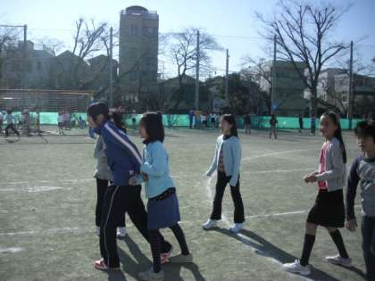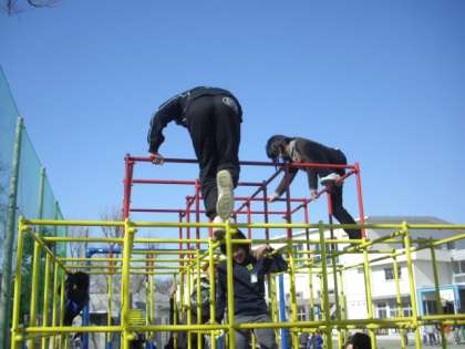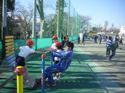 空気は少し冷たくても、たくさんの陽差しをあびた校庭は暖かいです。