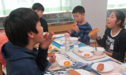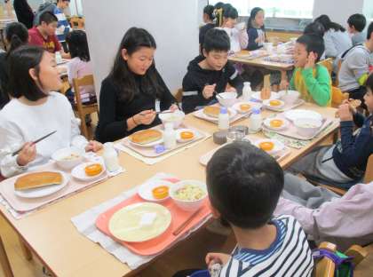 異学年交流の一環として、ランチタイムをきょうだい学年で過ごしています。今月は1年生と6年生が一緒に給食を食べています。1年生は憧れの6年生が隣に座ってくれるので、とても嬉しそうです。