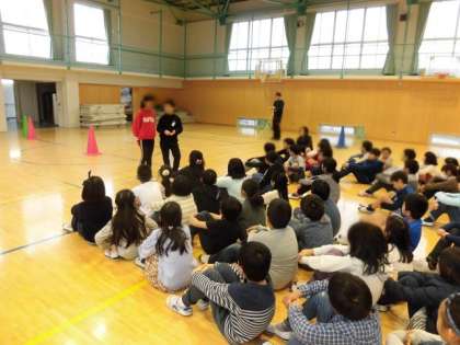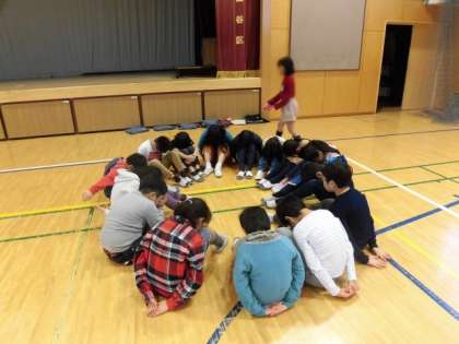 今日は3年生と4年生のペア学年で、ランチルームで給食を食べ、その後体育館で、一緒に楽しく遊びました。4年生は、3年生に楽しんでもらえるように一生懸命考え、3年生は、4年生の姿から、来年から高学年になるんだという自覚を持つことができました。