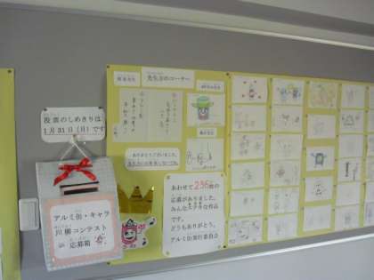 「アルミ缶キャラ・川柳コンテスト」を1月31日まで体育館入口で開催しています。明日の授業参観にお越しの折には、ぜひご覧ください。素敵な作品ばかりです。