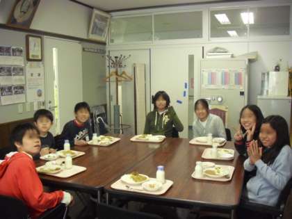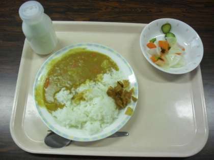 今日も楽しい会食です。好きな食べもの、苦手な食べ物の話で盛り上がりました。歴代校長先生のお写真に興味をもった子もいました。校長先生のイスに座ってみたいということで、一人ずつイスに座りました。どんな気持だったでしょうね。今日の献立は人気NO1のカレーライスです。