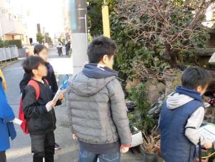5年生は総合的な学習の時間として、地域安全マップ作りに取り組んでいます。今日は実際に地域を巡りました。「入りやすく、誰からも見えにくい場所が犯罪が起こりやすい」「植栽など、手入れが行き届いている場所は、犯罪が起こりにくい」と、玉川警察署のスクールサポーターから学んだ視点をもって、自分たちの住む地域を見て回りました。