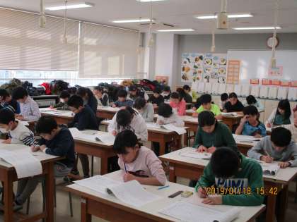 「みしまの森学舎合同学校運営委員会」主催で、漢字検定を実施しました。各校の委員が検査監督者を務め、4年生以上の希望者が参加しました。本校は58名の児童が受験しました。皆、集中して一生懸命に取り組んでいました。約1か月後の結果発表が待ち遠しそうでした。