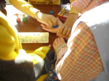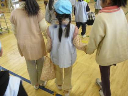 1年生も2年生も年長さんに優しく接しています。しかりつないだ手を見て嬉しくなります。