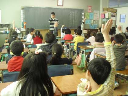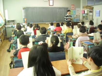 3組の授業です。副読本をきちんと持って読んでいます。