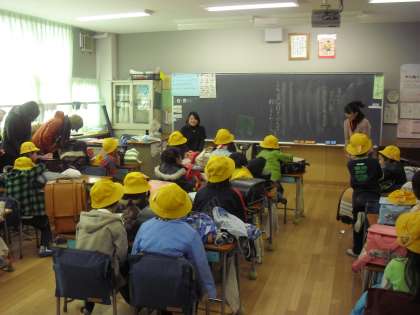 授業の後、保護者の方々、子どもたち一人一人とお別れのあいさつをしました。