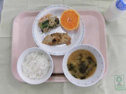 今日の給食は、ごはん、牛乳、野菜のごまあえ、みそしる、くだもの(デコポン)でした。野菜のごまあえやみそしるには、色とりどりの野菜がたくさん入っていました。色味やにおいなど、味ではないところでも食事を楽しみたいですね。