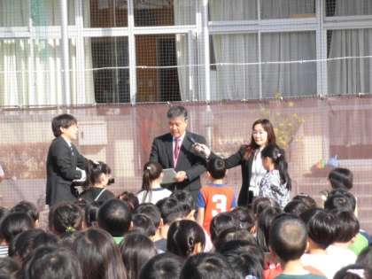良い天気の中、クラスの代表児童が修了証を受け取りました。また、1・3・5年生の代表児童が1年間のふり返りを発表しました。堂々とした姿は代表にふさわしく、大変立派でした。