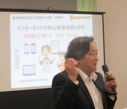 総務省と玉川警察署から講師をお招きし、中学へ進学する6年生を対象にSNSの使い方や危険性について確認しました。モラル、ルール、マナーの意味から教えていただき、児童は自分事として捉え、積極的に発言し合い、考えを深め合いました。この講座で学んだことを活かしSNSを上手に使ってほしいと思います。