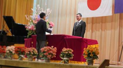本校の卒業生が、「新入生誓いのことば」を述べました。