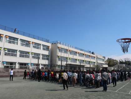 まずは、全校の集合写真を撮りました。