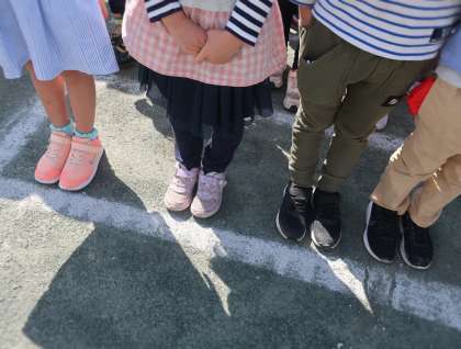 つま先を白線にそろえて立ちました。(1年生上手!)