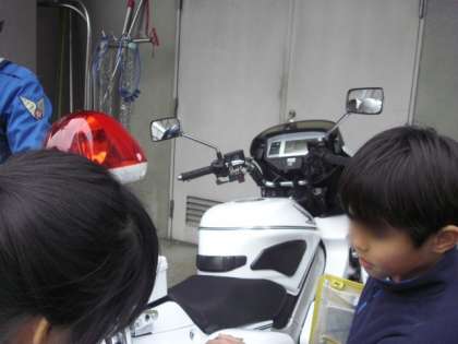 白バイや警察車両も間近で見ると迫力があります。