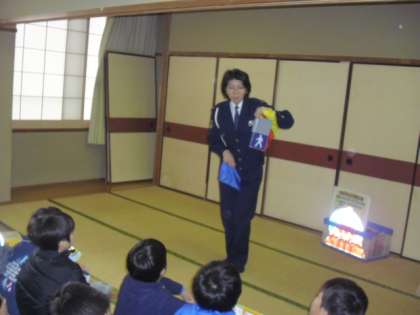 玉川警察署では、お巡りさんのお話やDVDでの映像による学習をしました。