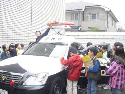 3年生の社会科「交通事故を防ぐ」の学習で、玉川警察署へ見学に行きました。