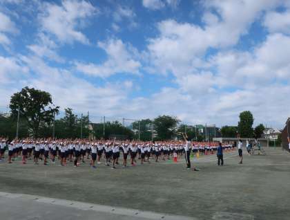 その後、準備運動をする位置を覚え、ラジオ体操をしました。