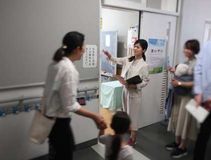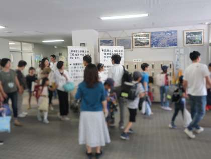 緊急地震速報が発表され、大きな地震がきたことを想定して、引き渡し訓練を行いました。