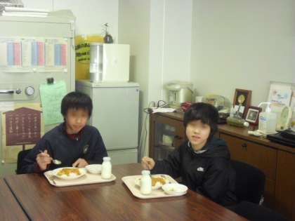 6年生との会食も今日で最後になりました。この二人は中学での部活動も決まっています。受け答えもしっかりしていて嬉しくなりました。きっと立派な中学生になると思います。来年の会食が今から楽しみです。