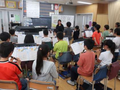 音楽室に、すてきな歌声、リコーダーの音色が響きました。