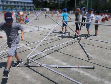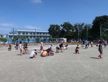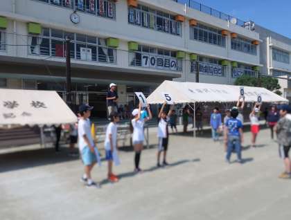 明日の運動会に向けて、下校前に椅子を校庭に並べました。