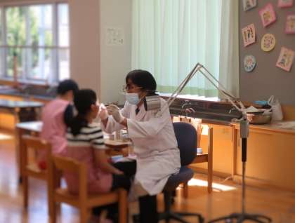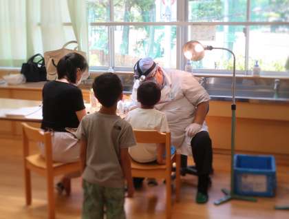 虫歯はないか、磨き方はどうか、歯科校医の先生にみていただきました。
