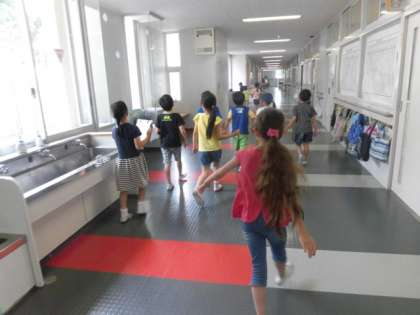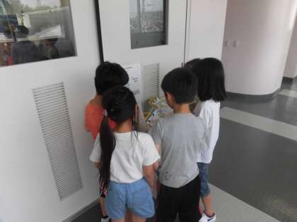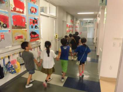 生活科の学習で2年生が1年生を案内し、学校たんけんをしました。
