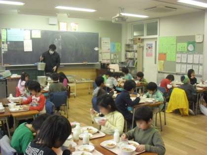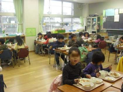 1年生も仲良くおいしく食べました。ごちそうさまでした。