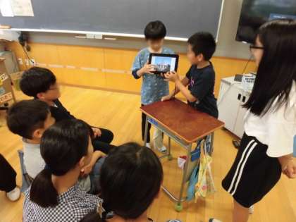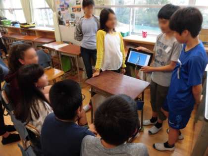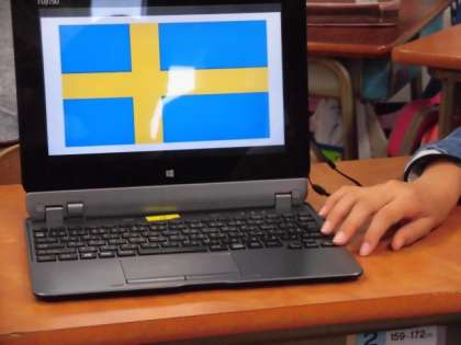 6年生は、オリンピック・パラリンピック教育の一環で、「出場する選手の国を調べよう」と、思い思いの国を調べました。この日は、外国語の学習とタイアップし、調べた国を英語で紹介しました。タブレットで国旗や資料写真を提示しながら、できるだけ原稿を見ずに話しました。
