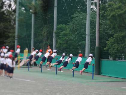 「ツバメ」や「ふとん干し」などの鉄棒遊びをしました。