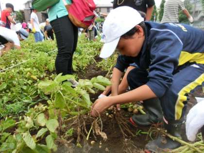 本日4年生は、深沢地区にある秋山農園にじゃがいも掘りに行きました。茎を引き抜くと、児童のげんこつ程の大きさのじゃがいもがたくさんとれました。たくさんのじゃがいもを収穫することで、自然への感謝の気持ちをもちました。