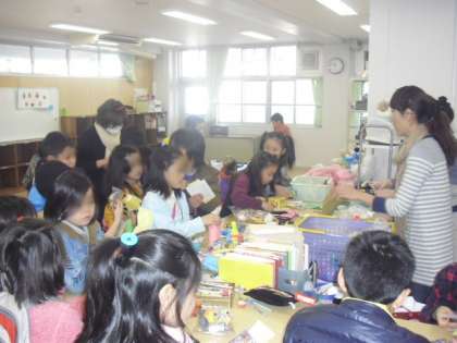 BOP室や視聴覚室、体育館などを使って今日は「新BOPフェスティバル」です。新BOPを中心にPTA、遊び場開放委員会、おやじの会、ジャガーズ、東深沢・等々力コミュニティー、ねたきりゼロをめざすまちのかい、学童クラブ父母の会、深沢児童館、日本体育大学社会貢献の学生とさまざまな方々の協力で、楽しい催しができました。