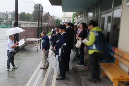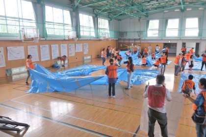 朝より、避難所運営本部の方々による、避難所設営訓練を行いました。