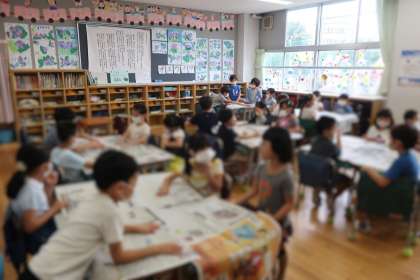 手を洗い、マスクをし、机に新聞紙を広げて準備完了です。