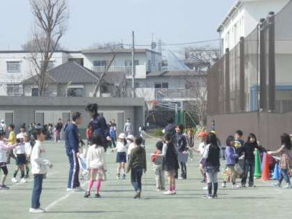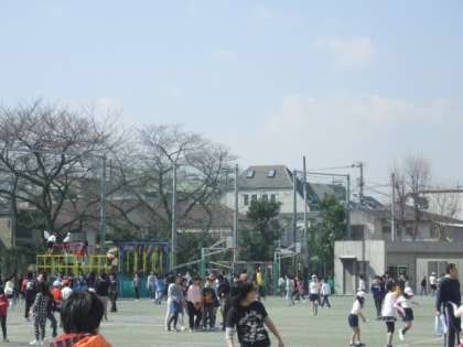 寒い日が続いています。今日も空気は少し冷たいですが、日差しはもう春そのものです。中休みは校庭で元気に遊ぶ子どもたちでいっぱいです。先生方も一緒に遊んでいます。