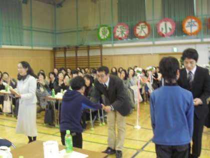 6年生の担任の先生へのサプライズプレゼントは、子どもたち一人一人からのメッセージです。先生方には内緒で用意をしていました。まさにサプライズです。プレゼントをいただいた先生方も本当に嬉しそうです。最後は、親子で「ありがとう」の大合唱です。目頭が熱くなりました。